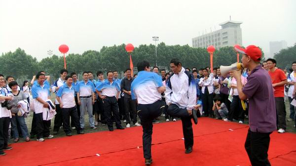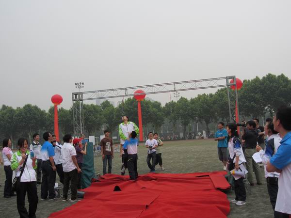 比赛中,运动健儿发扬了团队合作和坚持不懈的精神,拉拉队员们激情助威,让现场一片紧张欢腾。在“登人梯咬苹果”和“动感五环”的比赛中,团队合作精神表现得尤为突出。“气球胖子大格斗”和“斗鸡”的比赛更是实力和技巧的比拼,场上高潮迭起,欢声笑语直冲云霄。各参赛队在老师和同学们的呐喊和鼓励声中,同场竞技,努力拼搏,勇往直前!同时,2011级研究生各班级之间还进行了专项拔河比赛。