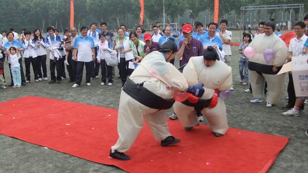 本次999策略手机论坛版2012益智趣味运动会共设“登人梯咬苹果”,“坐气球过桥”,“斗鸡”,“数字组合”,“滚雪球过呼啦圈”等12个比赛项目,其中团体赛4个项目,单项赛8个项目。运动会以各研究所、研究中心、行政机关为单位,师生联合组队。15支代表队身着整齐运动服装,精神抖擞,斗志昂扬,成为运动场上一道亮丽的风景。最后动感五环的冠军是孙永宣、孙锐、吴共庆队伍,登人梯咬苹果冠军胡东辉、刘超;快速喝啤酒冠军吴永忠;气球胖子大格斗的冠军是詹曙、胡社教;勺子运乒乓球冠军是信号所;人体压路机的冠军是孙晓、朱正红;数字组合的冠军是汪荣贵、李琳;坐气球过桥冠军是孙永宣、孙克文;斗鸡的冠军是信号所;人体碰碰乐的冠军是孙晓;敲打游戏是罗旬;滚雪球过呼啦圈的冠军是通信所。